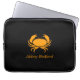 Show off your crush on crusty crustaceans with our eye-catching, Ocean Glow, maritime icons, fully-customizable Orange on Black Crab Crab super stylish, travel-friendly, 100% neoprene laptop sleeve. To personalize it, just add your name in the available template field, and you're done. If you're feeling creative, you can also change the size, placement, color, and even the number of crabs. Just click "Customize it" and let the fun begin!