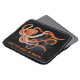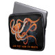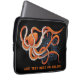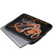 Um polvo laranja contra um pano de fundo de preto. Tentáculos de polvo dentro e em volta de bolhas e uma mandala azul