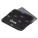 Adicione seu nome em olhos roxos de gato sobre o padrão de fundo preto.