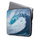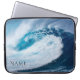 Bolsa de laptop de Neoprene 15'' com uma bela foto de onda oceânica com nome personalizável em preto no canto inferior esquerdo.