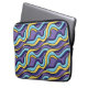 Bolsa de laptop de ondas coloridas com um padrão que apresenta ondas de abstrato funk sem costura em cores amarela, azul e roxa. Esta divertida design geométrica trippy é desenhada no estilo retrô-moderno.
