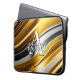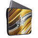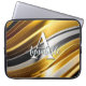 Esta design moderna de bolsa de laptop de arte abstrato é atraente e faz uma declaração verdadeira com suas ondas de ouro, bronze e metal falso prateado. Vivo e atordoante. Adicione um nome e inicial para personalizá-lo. Criado pela imprensa simplesmente de farmácia.