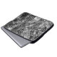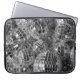 Os ornamentos de esfera de Disco de vários tamanhos formam uma pilha caótica nesta única fotografia em preto e branco. As bolas de espelhos brilhantes refletem sombras claras ou escuras de cada uma de suas pequenas facetas espelhadas. Os ornamentos da bola reluzente descansam em cima das terras com miçangas dodecaedro prateadas refletoras. Fotografia digital, preta e branca. Copyright © 2013 Claire E. Skinner. Todos os direitos reservados.