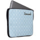 Um cobrir elegante com um bonito padrão geométrico de linhas e curvas, em branco sobre fundo azul claro. Personalize com o nome do destinatário, em tipografia de guião quic, para um presente individual de na moda.