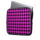 Bolsa de laptop de padrão de diamante do verificador preto rosa - 3 tamanhos
