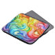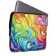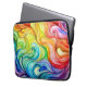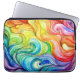 Padrões giratórios de cores vibrantes se misturam perfeitamente, criando uma composição dinâmica e fluida. Linhas e gradientes curvos fluem numa visualização harmoniosa de vermelho, laranja, amarelo, verde, azul e roxo.