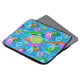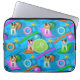 Esta bolsa de laptop neoprene de uma festa de cão branco para um dono de Parson / Jack Russell Terrier apresenta um padrão de quatro diferentes JRTs / PRTs com variadas marcas castanho e preto na cabeça/corpo e uma charmosa cabeça de cão inclinada sobre seus colorido tapetes flutuantes azul, rosa, laranja e limão com uma bola de tênis em uma clara piscina azul de natação, cada vestindo anel de natação colorido (com pequeno padrão JRT) em volta do pescoço e rodeado por macarrão e bolas coloridas de natação e brinquedos de mastigação flutuantes amarelos em forma de peixe-estrela - o monograma é personalizável em um pendante de círculo verde limão - Parson / Jack Russell piscina festa de piscina © katz_d_zynes 2019