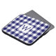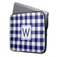 Proteja o seu laptop com uma manga neoprena que contém quadrados azuis-claros, brancos e azuis-marinho numa xadrez de búfalo clássica com um monograma personalizado dentro de um quadrado branco no centro. Personalize-o com a sua inicial na barra lateral. Outras bolsas de laptop também disponíveis. Para ver o padrão design Marinho e Gingham Branco em outros itens, clique na coleção abaixo. Imagem criada digitalmente. Copyright ©Claire E. Skinner. Todos os direitos reservados.