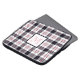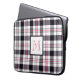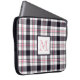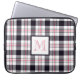 Esta bolsa de laptop personalizada apresenta um padrão moderno de tartan (xadrez) com listras em branco, cor-de-rosa avermelhado e preto e um monograma enquadrado em cores compatíveis.