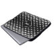 Bolsa de laptop com padrão de diamante monograma, preto e branco.