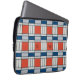 Esta bolsa de laptop apresenta um padrão geométrico retrorreflector em cinzas vermelha, azul e clara. Personalize-o com seus monogramas de preto.