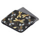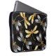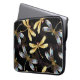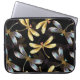 Padrão sem costura com ouro, joias, libélulas brilhantes com asas brilhantes e detalhadas sobre fundo preto. Dourada libélula.