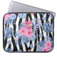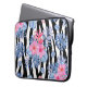 Capa Para Notebook Padrão Zebra com Hibisco Tropical e Flamingos