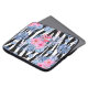 Uma marca zebra branca e negra moderna sobreposta com um hibisco rosa e azul tropical e um padrão flamingo.