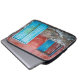 Capa Para Notebook Parede vermelha, azul e cinza, porta e janela