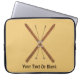 Pincéis cruzados de madeira e bastões de esqui num fundo de pele de fivela. Você pode escolher outra cor de fundo. Adicione seu próprio texto.
