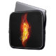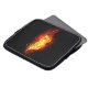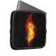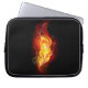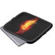 Pena de pavão brilhante feita de fogo e chamas sobre fundo negro.