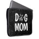 Pêlos brancos e pílulas de cão com texto de "mãe de cão" em padrão de xadrez de búfalo preto e branco em fundo preto. A cor de fundo pode ser alterada.