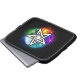 Pentagrama luminoso desenhado artificialmente com cinco elementos mágicos, água, terra, fogo, astral, ar sobre fundo negro. Pentagrama Wiccan. Wicca