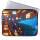 Uma pequena rua japonesa à noite com a arte noturna do céu.