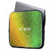 Personalize os nomes Shiny Shades de bolsa de laptop Verde e Amarelo. Veja os tons coloridos em padrões de abstrato.