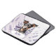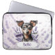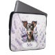 A charming custom laptop case featuring a hand-drawn Miniature Pinscher named BoBo, surrounded by soft lavender blooms for a unique and elegant look.