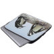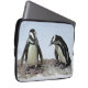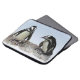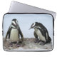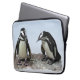 Esta bolsa de laptop caracteriza dois pinguins africanos adoráveis que estão em uma borda rochosa. São os pássaros aquáticos, flightless cujas as asas têm aletas tornadas. Cada um tem uma listra preta e uns pontos pretos na caixa. O teste padrão dos pontos é original para cada pinguim, apenas como impressões digitais humanas. Têm as glândulas cor-de-rosa acima de seus olhos e os pés cor-de-rosa e pretos.