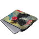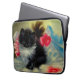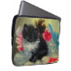 Bolsa de laptop com um gatinho preto e branco! Esse tuxedo fofo se posou entre as flores vermelhas num cobertor azul. Um presente magnífico para amantes de gatos e entusiastas de arte vitorianos!