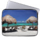 Uma outra praia bonita no Riviera maia, situado entre o Playa del Carmen e o Tulum é praia de Paa Mul. Esta praia é leve rochosa, mas se você vai dentro com com cuidado, as pessoas podem apreciar todo o sealife existente, apenas um medidor longe da costa. Paa Mul, Quintana Roo, MexicoIt pode ser visto um par guarda-chuvas ou cabanas grandes com algumas cadeiras no primeiro plano e um mar das caraíbas profundo do azul e da turquesa no fundo. Algumas nuvens igualmente podem ser vistas no horizonte.