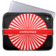 Raios de sol nascente vermelhos em capa de laptop com fundo branco e preto. Texto pronto para ser personalizado.