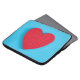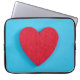 Este design apresenta uma imagem de um coração vermelho brilhante que foi originalmente feito de feltro; é colocado sobre um fundo azul claro.