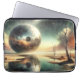 Essa esfera metálica surrealista e intacta reflete uma paisagem apocalíptica do deserto do barão, com mortos, fogo e fumaça.