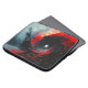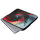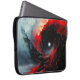 Esta bolsa de laptop tem um design vermelho e preto de espiral artística.