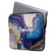 Bolsa de laptop de nome Dourado de Rosa de mármore roxo. Personalize adicionando seu nome.