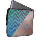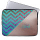 Esta bolsa de laptop apresenta um padrão decorativo moderno e elegante de dois tons padrão decorativo rosa dourado falso em folha metálica com padrão verde turquesa verde chevron zigzag no brilho da brilha do arco-íris e monograma de nome feminino. Perfeito para qualquer ideia de presente feminino de época de férias e ocasional para sua família e amigos que gostam do padrão decorativo chevron zigzag de dois tons com folha metálica falsa brilhante. Você pode alterar o texto, as fontes e as cores ou remover clicando em ferramentas de personalização.