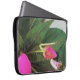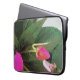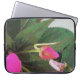 A trabalho de arte nesta Bolsa de laptop de 15" é uma fotografia original de MaeFlowers de uma planta de Nova Guiné impaciente, em flor com flores rosa-quente. A foto é uma armação mostrando partes das pétalas de flores rosa-claro, um botão de flor em cor rosa-pálido, e os restos de uma floração anterior. As folhas verdes e escuras dos impacientes são longas e pontiagudas, com bordas quebradas contra fundo de cinza de luz quente. A design tem uma textura de tapeçaria.