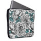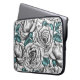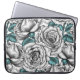 Um belo padrão digital pintado à mão, rosas brancas com folhas azuis.