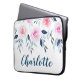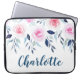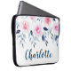 As rosas rosa e azuis elegantes deixam design de aquarela com texto personalizável para um nome ou monograma numa bolsa de laptop.