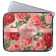 Chic, Elegante, Vintage, Rosa, Vermelho violeta pálido, Bolsa de laptop de nome floral rosa. Design, romântica e giro, uma elegante vintagem, rosas vermelhas florais cor-de-rosa pálido, violeta pálida com padrão de folhas verdes sobre fundo rosa de ouro, com etiqueta rosa de ouro. Você pode personalizar com seu nome e monograma. Se você não precisar personalizar, poderá excluí-lo. Esta rosa floral colorida, feminina, é uma ideia romântica perfeita para ela em qualquer ocasião.