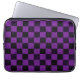This moody laptop sleeve features a pattern of rustic checks, checkers that are distressed in purple and black.