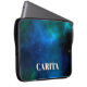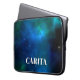 Um caso de laptop personalizado com um fundo de espaço azul. Adicione seu próprio nome a este produto usando o modelo personalizado.