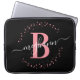 Rapariga, moderna, moderna, elegante, cor-de-rosa e preto-branco, script de nome inicial de monograma personalizado bolsa de laptop monograma personalizada. Apresentando um monograma inicial e um script de nome feminino em uma letra de caligrafia com letras de mão, com caudas intermitentes e um círculo pontilhado ao redor do seu monograma. Presente feminino perfeito para irmã, mãe, namorada, aniversário, casamento, chá de panela, doce festa de aniversário 16, moda, donos de salões de beleza, ou qualquer pessoa que ama o estilo feminino bonito e moderno.