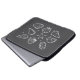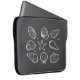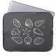 Uma bolsa de laptop com um design de joabt. A design mostra conchas organizadas em um padrão.