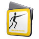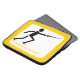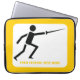 Bolsa de laptop de vedação da silhueta preta de encanador que mostra um ícone de pictograma minimalista de uma silhueta preta de um encenador segurando sua espada e seu texto sobre fundo branco com borda amarela. Este design legal e moderno é um modelo e é completamente personalizável.