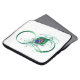 O símbolo do infinito com uma pena brilhante, verde, de pavão artístico sobre um fundo branco. Tatuagem.