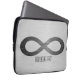 Símbolo infinito na textura de metal escovado, bolsa de laptop de 13 polegadas. Exclua ou altere o texto de exemplo, fonte, cor da fonte, tamanho da fonte à sua escolha. As imagens podem ser giradas, excluídas ou redimensionadas.