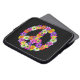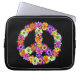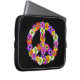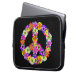 Um sinal de paz floral em tons de rosa, amarelo, laranja, roxo, verde, branco e preto.