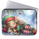 Capa Para Notebook Sleeping Christmas Elf with Calico Kitten
