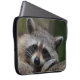 Foto adorável de um guaxinim sonolento em capas e capas eletrônicas.