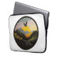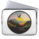 A sticker with an eagle flying over a mountain, in the style of contemporary landscape, golden light, black mountain college, fisheye lens, arts and crafts movement, mid-century illustration